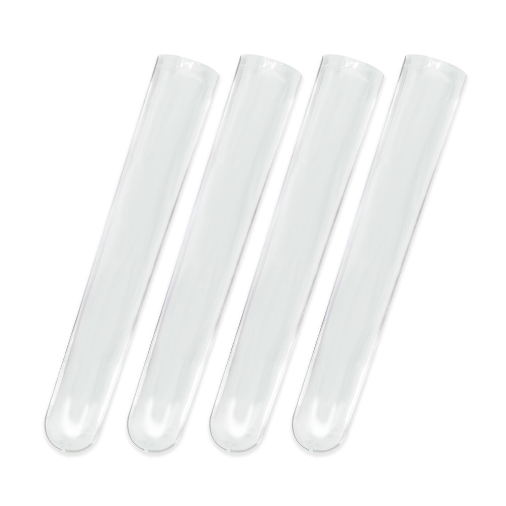 Estrutura cilíndrica em poliestireno de alta pureza, acabamento translúcido tipo leitoso, projetado para uso geral em laboratório, com excelente processabilidade conforme padrões do setor.